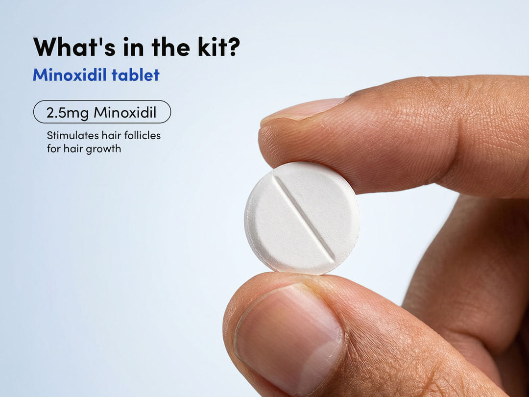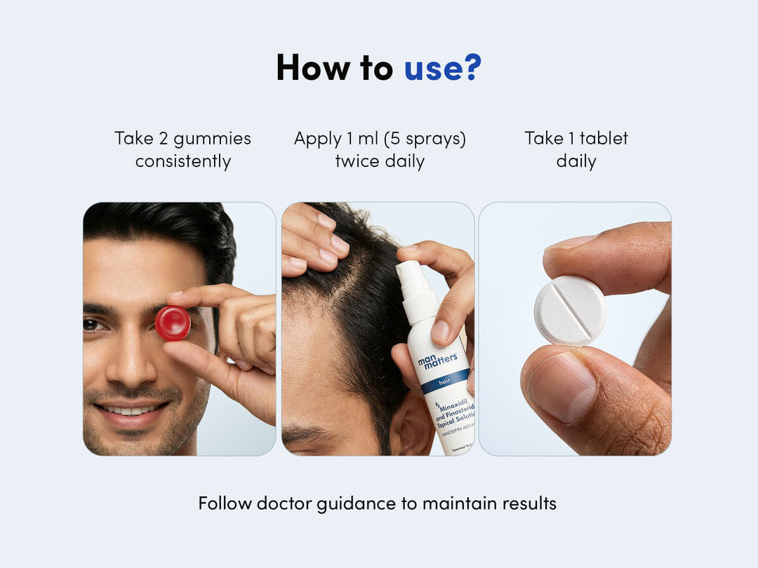 Our Hair Regrowth Advance Regime combines Topical Minoxidil & Finasteride with Oral Minoxidil and Biotin Gummies, for better results than regular treatment.