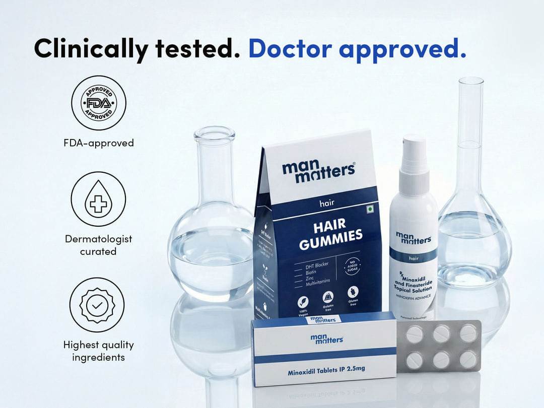 Yes. Topical Minoxidil has been used safely for over 40 years and is FDA-approved for hair regrowth. Topical Finasteride has a strong safety profile when used as directed. Our Biotin Gummies are made with 100% vegan, sugar-free ingredients safe for daily use. All formulations are dermatologist-approved and made in India under strict quality standards.